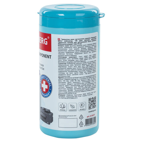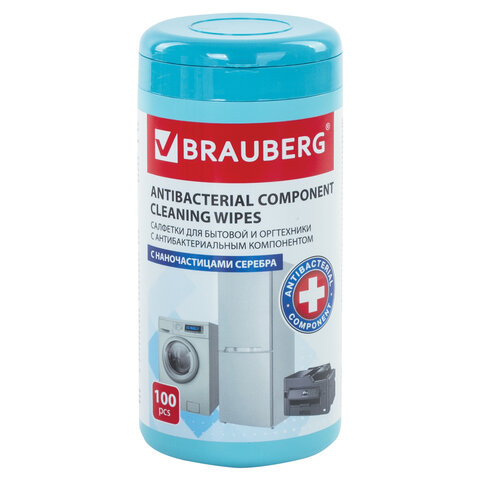 Салфетки АНТИБАКТЕРИАЛЬНЫЕ ДЛЯ БЫТОВОЙ И ОРГТЕХНИКИ, ПЛОТНЫЕ, BRAUBERG, 100 шт., 513477