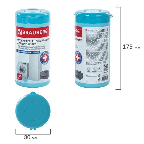 Чистящие влажные салфетки BRAUBERG с антибактериальным компонентом предназначены для очистки и дезинфекции (обеззараживания), удаления пыли и загрязнений с бытовой и офисной техники. Не оставляют разводов на поверхности.