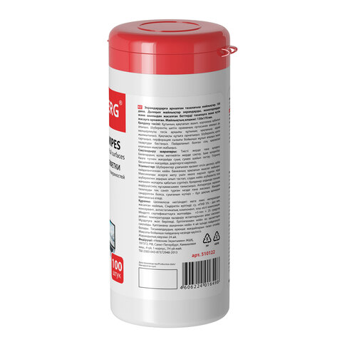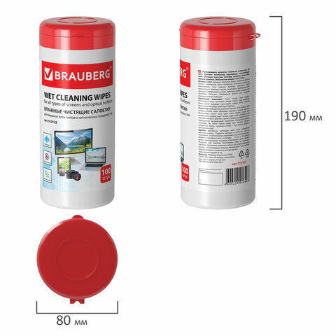 Салфетки для экранов всех типов и оптики BRAUBERG, туба 100 шт., влажные, 510122