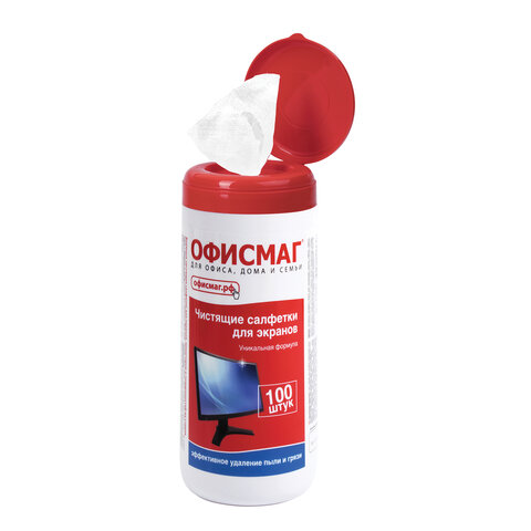 Салфетки для экранов всех типов и оптики ОФИСМАГ, туба 100 шт., влажные, 510483