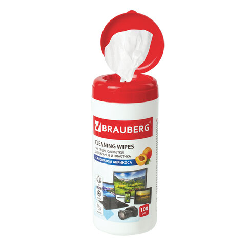 Салфетки для экранов всех типов и пластика BRAUBERG с ароматом АБРИКОС, туба 100 шт., влажные, 513321