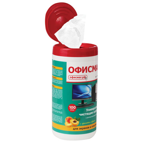 Салфетки для экранов всех типов и пластика ОФИСМАГ с ароматом "АБРИКОС", туба 100 шт., влажные, 511690