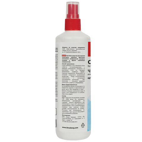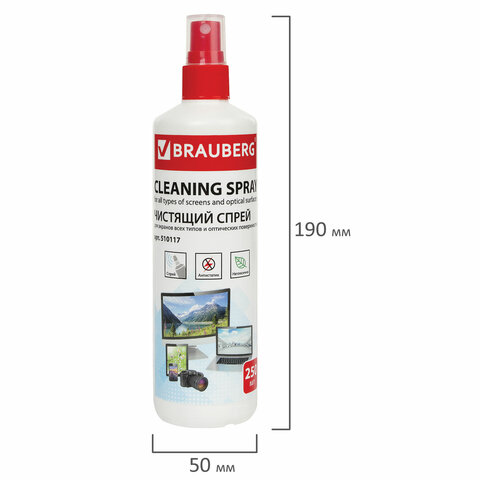 Чистящая жидкость-спрей BRAUBERG обеспечивает идеальное очищение сильно загрязненных поверхностей из стекла: компьютеров, мониторов, мобильных устройств. Подходит для протирки оптических поверхностей и линз очков.