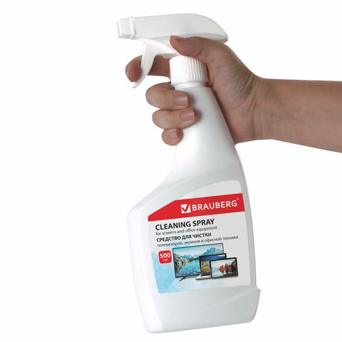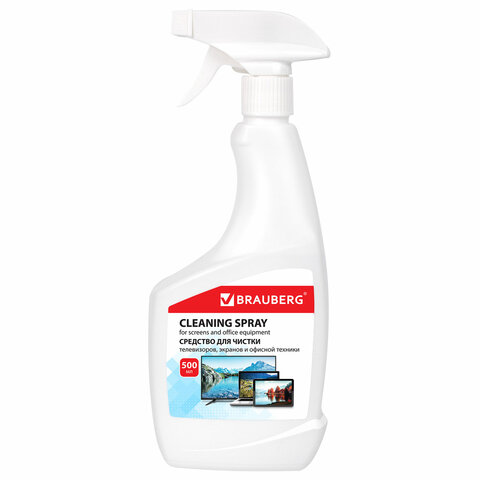 Чистящая жидкость-спрей BRAUBERG для телевизоров, мониторов, техники, оптики и стекол, универсальная, 500 мл, 513288