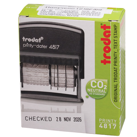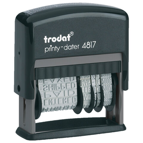 Мини-датер проставляет оттиск даты с указанием месяца буквами. 12 терминов меняются вращением колесика. Часто используется в организациях, на таможне, в банках, государственных структурах.