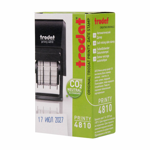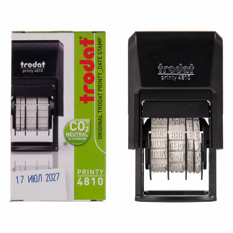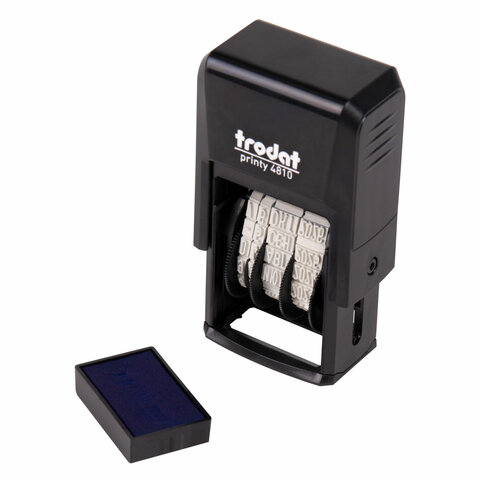 Датер-мини, месяц БУКВАМИ, оттиск 20х3,8 мм, синий, TRODAT 4810 P4, корпус черный, подушка, 70621