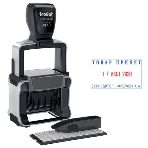 Датер самонаборный, металлический, 2 строки + дата, оттиск 41х24 мм, сине-красный, TRODAT 5435, КАССА, 130012