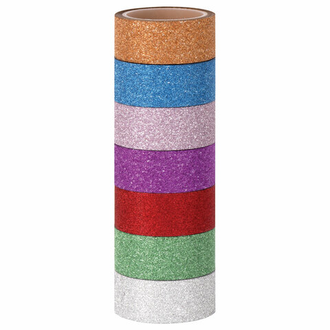 Клейкие ленты полимерные для декора с блестками "ИНТЕНСИВ", 15 мм х 3 м, 7 цветов, ОСТРОВ СОКРОВИЩ, 661715