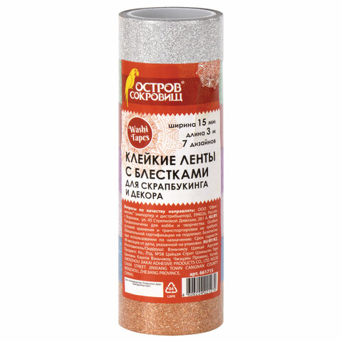 Декоративные клейкие ленты ОСТРОВ СОКРОВИЩ подходят для использования в скрапбукинге, декорирования поделок, открыток, оформления подарков. Ленты легко приклеиваются и надежно фиксируются на любой поверхности, придавая изделиям оригинальный вид.