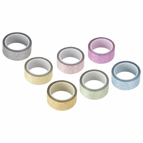 Клейкие ленты полимерные для декора с блестками "ПАСТЕЛЬ", 15 мм х 3 м, 7 цветов, ОСТРОВ СОКРОВИЩ, 661716