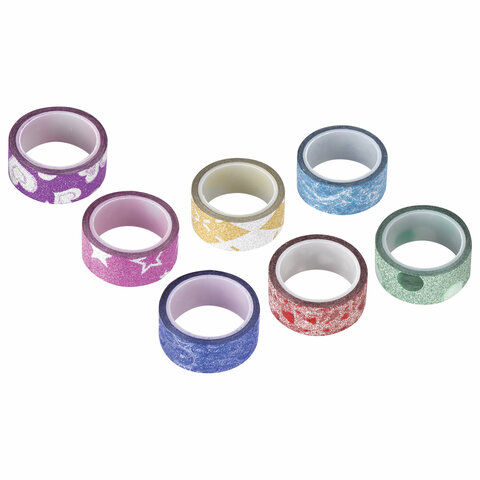 Клейкие ленты полимерные для декора с блестками "УЗОРЫ", 15 мм х 3 м, 7 цветов, ОСТРОВ СОКРОВИЩ, 661718