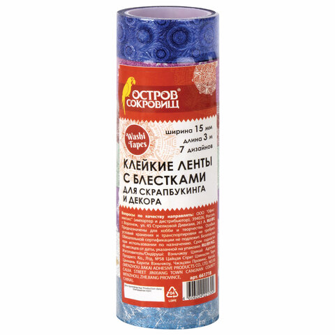 Декоративные клейкие ленты ОСТРОВ СОКРОВИЩ подходят для использования в скрапбукинге, декорирования поделок, открыток, оформления подарков. Ленты легко приклеиваются и надежно фиксируются на любой поверхности, придавая изделиям оригинальный вид.