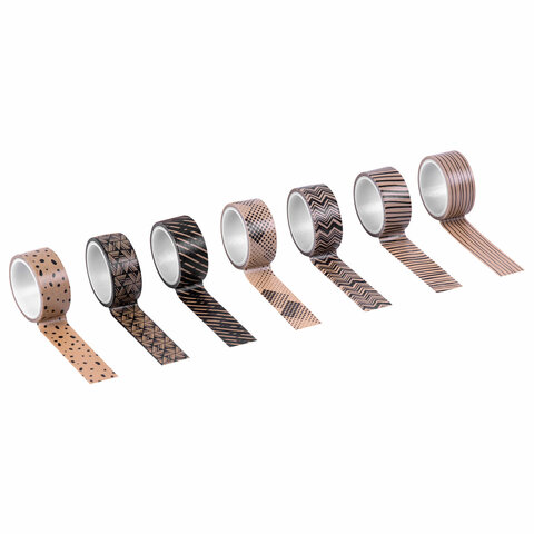 Клейкие WASHI-ленты для декора КОФЕЙНЫЕ ЦВЕТА, 15 мм х 3 м, 7 цветов, рисовая бумага, ОСТРОВ СОКРОВИЩ, 661706
