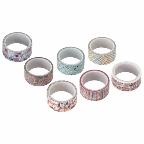 Клейкие WASHI-ленты для декора "Микс №3", 15 мм х 3 м, 7 цветов, рисовая бумага, ОСТРОВ СОКРОВИЩ, 661711