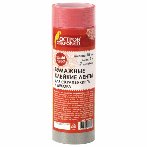 Бумажные клейкие ленты ОСТРОВ СОКРОВИЩ подходят для использования в скрапбукинге, декорирования поделок, открыток, оформления подарков. Декоративные ленты легко приклеиваются и надежно фиксируются на любой поверхности, придавая изделиям оригинальный вид.