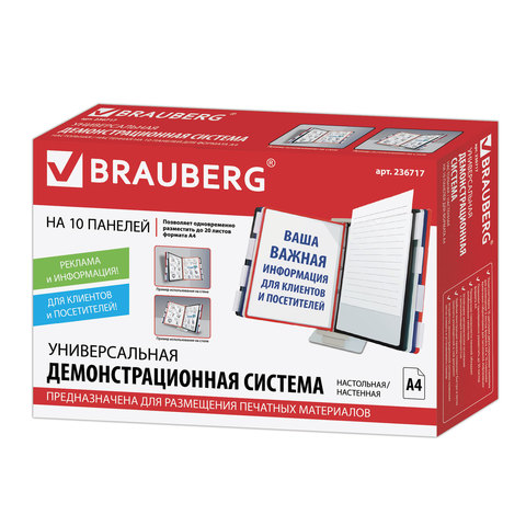 Настольная демонстрационная система BRAUBERG SOLID позволяет удобно и быстро разместить информацию о компании, о предлагаемых товара, услугах и ценах, инструкции для персонала и др.