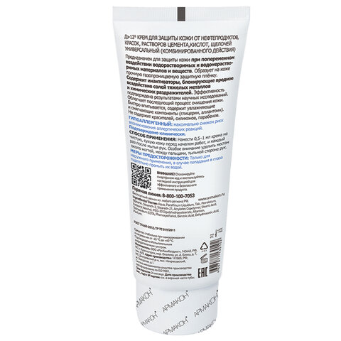 Крем защитный, 100 мл, АРМАКОН ДЭ-12, универсальный, от водорастворимых и водонерастворимых веществ, 1199