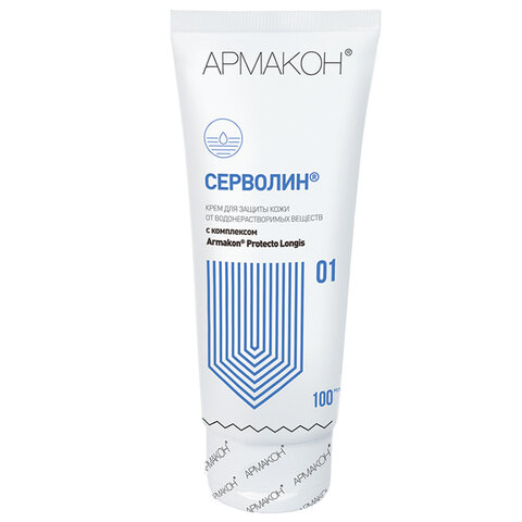 Крем защитный, 100 мл, АРМАКОН "СЕРВОЛИН", гидрофильный, от нефтепродуктов, смазочно-охлаждающих жидкостей, красок, 1197