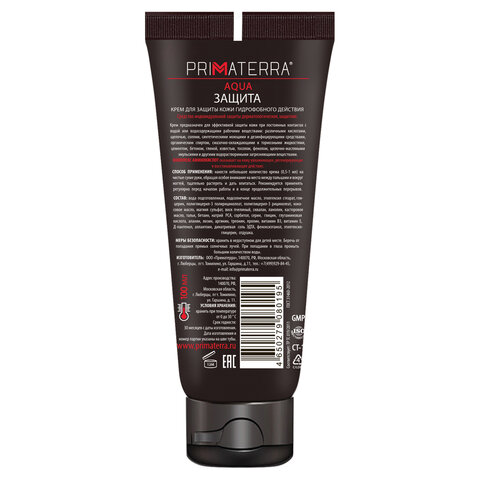 Крем PRIMATERRA AQUА предназначен для защиты кожи от воздействия разбавленных водных растворов различных кислот, щелочей, солей, синтетических моющих и дезинфицирующих средств и других водорастворимых загрязняющих веществ.