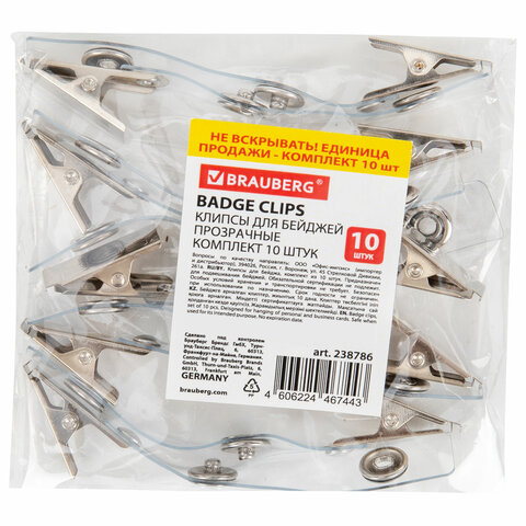 Клипсы для бейджей BRAUBERG предназначены для крепления бейджей без держателя. Упаковка из 10 штук – выгодное решение для сотрудников компаний, а также участников семинаров, тренингов, презентаций и других мероприятий.