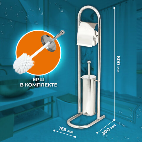 Эргономичная напольная стойка с держателем для туалетной бумаги и подставкой с ершом в комплекте.