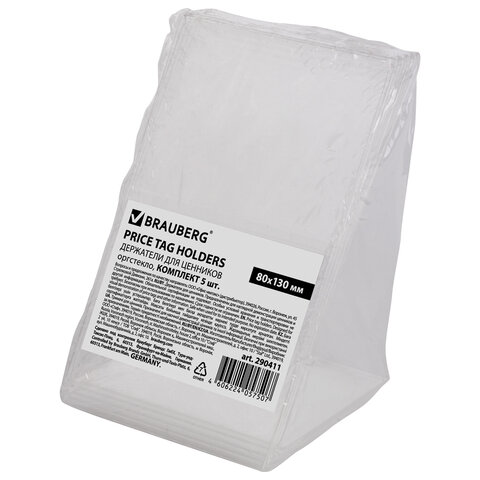 Держатели для ценников, 80х130 мм, КОМПЛЕКТ 5 шт., оргстекло, BRAUBERG, 290411