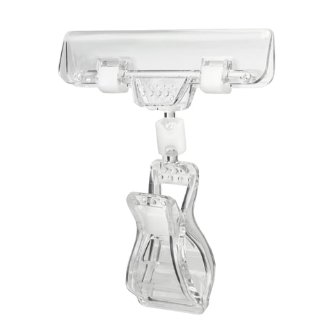 Держатели-прищепки крепятся на край полки, продукта, торгового оборудования, обеспечивая размещение ценника или рекламной вывески непосредственно около товара.