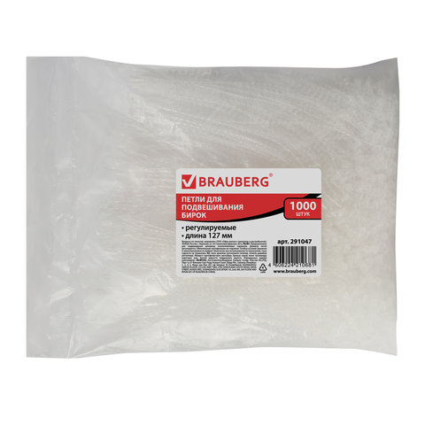 Петли для подвешивания бирок, регулируемые, 127 мм, комплект 1000 шт., BRAUBERG, 291047