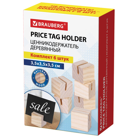 Ценникодержатель деревянный (ценники, реклама, фото) 3,5х3,5х3,5 см, КОМПЛЕКТ 6 шт., BRAUBERG, 291311
