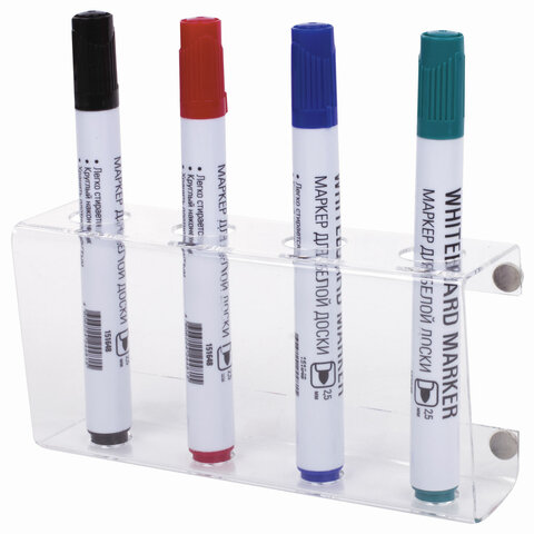 Держатель магнитный для 4 маркеров для доски (85х160 мм), прозрачный акрил, BRAUBERG, РОССИЯ, 235530
