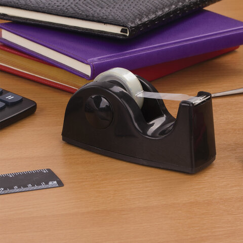 Диспенсер для клейкой ленты BRAUBERG настольный, утяжеленный, средний, черный, 11,8х5х5 см, 440142