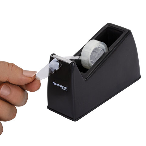 Диспенсер BRAUBERG предназначен для облегчения использования клейкой ленты, предоставляет легкий доступ к скотчу, упрощает процесс упаковки и ремонта предметов, незаменим при большом объеме работ.