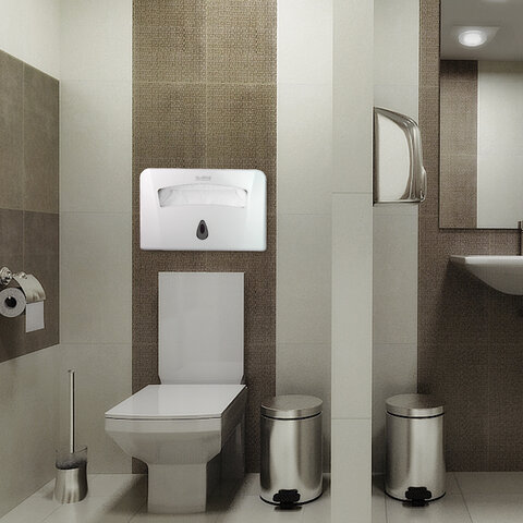 Диспенсер для покрытий на унитаз LAIMA PROFESSIONAL подходит для использования в туалетных комнатах офисов, торговых центров, аэропортов, вокзалов, ресторанов и т.д.