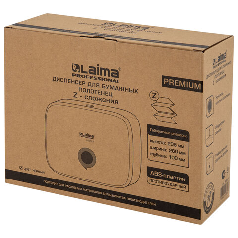Диспенсер для полотенец LAIMA PROFESSIONAL PREMIUM BLACK (Система H2), Z-сложения, черный, ABS-пластик, 609522