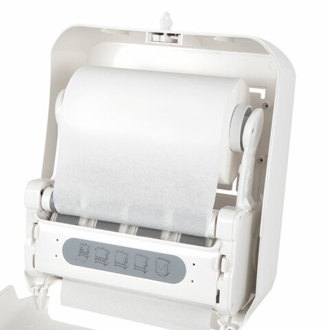 Благодаря системе бесконтактной подачи диспенсер для полотенец в рулонах LAIMA PROFESSIONAL ORIGINAL обеспечивает значительное сокращение расхода полотенец. Оптимальное решение для мест с высокой проходимостью.