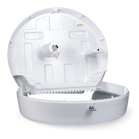 Идеальное решение для туалетных комнат с большой проходимостью людей. Оснащен устройством, предотвращающим самопроизвольное разматывание рулона и дополнительной втулкой для частично использованного рулона.