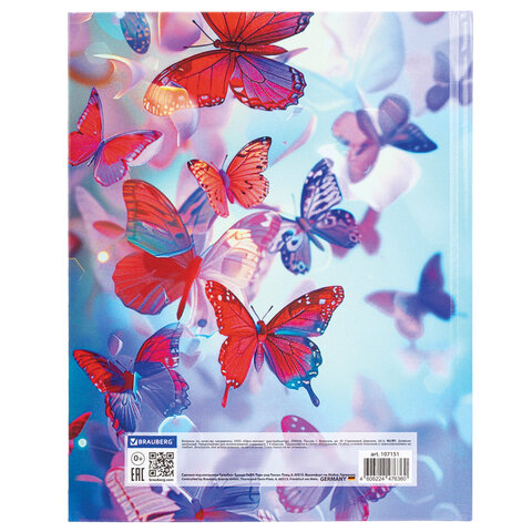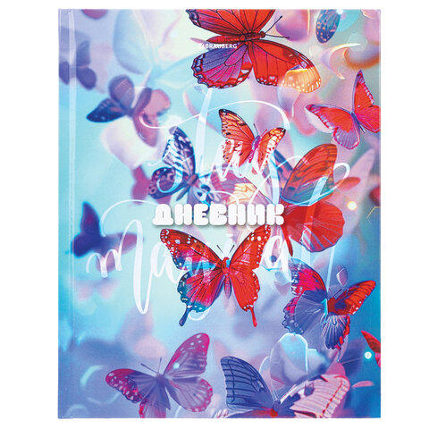 Дневник 1-4 класс 48 л., твердый, BRAUBERG, глянцевая ламинация, с подсказом, "Бабочки", 107151