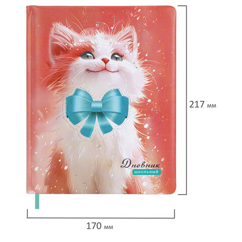 Дневник 1-4 класс 48л, кожзам (твердая с поролоном), печать, аппликация, ЮНЛАНДИЯ, Котик, 107224