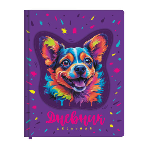 Дневник 1-4 класс 48 л., кожзам (твердая с поролоном), печать, аппликация, ЮНЛАНДИЯ, "Собачка", 106937