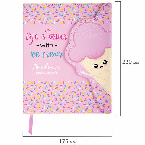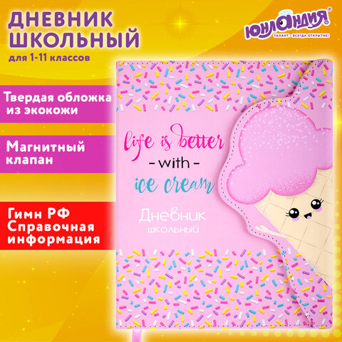 Дневник 1-11 класс 48 л., кожзам (твердая), магнитный клапан, ЮНЛАНДИЯ, "Мороженка", 106184