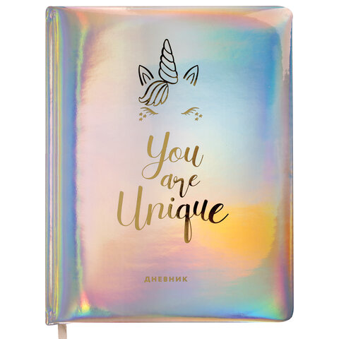 Дневник 1-11 класс 48 л., кожзам (твердая с поролоном), фольга, BRAUBERG HOLIDAY, "Unicorn", 106204