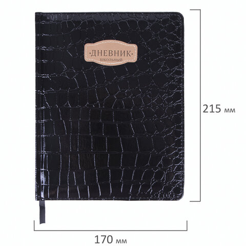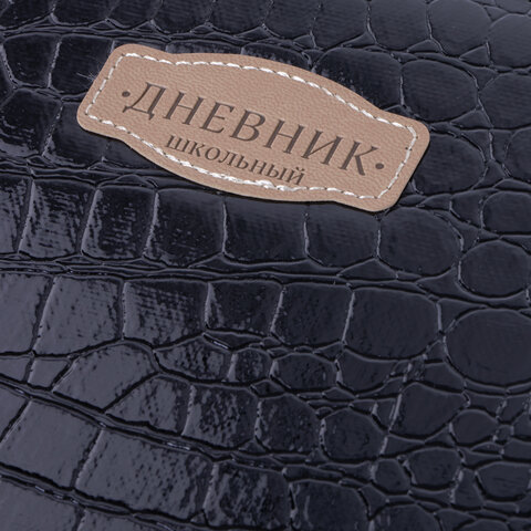 Дневник 1-11 класс 48 л., кожзам (твердая с поролоном), нашивка, BRAUBERG "CROCODILE", черный, 105481