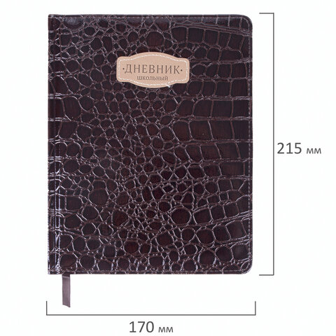 Дневник 1-11 класс 48 л., кожзам (твердая с поролоном), нашивка, BRAUBERG "CROCODILE", коричневый, 105482