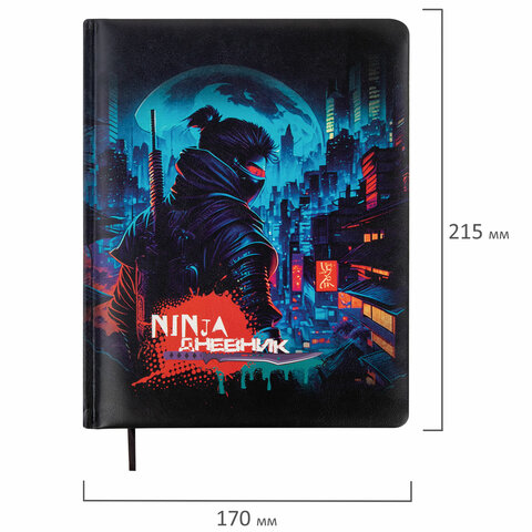 Дневник 1-11 класс 48 л., кожзам (твердая с поролоном), печать, цветной блок, BRAUBERG, "Ниндзя", 106950