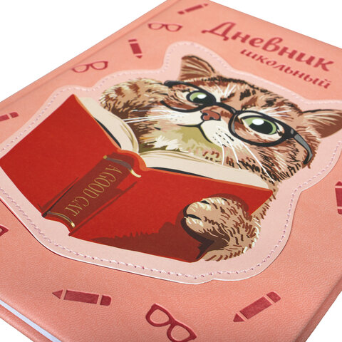 Дневник 1-11 класс 48 л., кожзам (твердая с поролоном), тиснение, аппликация, BRAUBERG, "Smart Cat", 106206