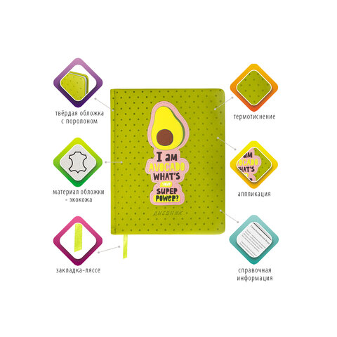 Дневник 1-11 класс 48 л., кожзам (твердая с поролоном), тиснение аппликация, BRAUBERG, "Super Avo", 106205