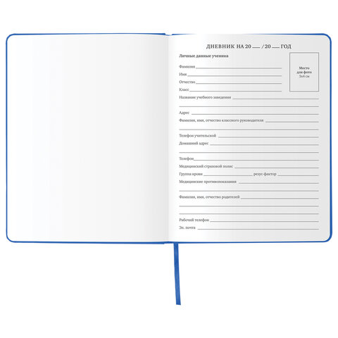 Дневник 1-11 класс 48 л., кожзам (твердая), термотиснение, BRAUBERG "VIENNA", синий, 105961