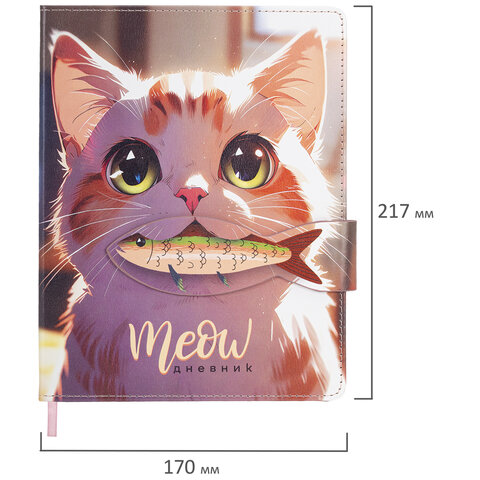 Дневник 1-11 класс 48 л., кожзам (твердая), застежка, BRAUBERG, "Котик с рыбкой", 107229