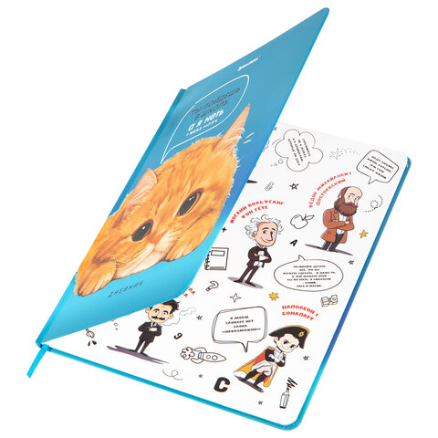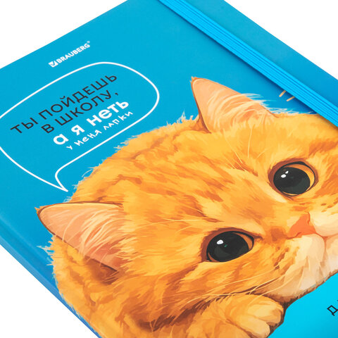 Дневник 1-11 класс 48 л., твердый, BRAUBERG, матовая ламинация, резинка, закладка-ляссе, с подсказом, "Котик", 107239