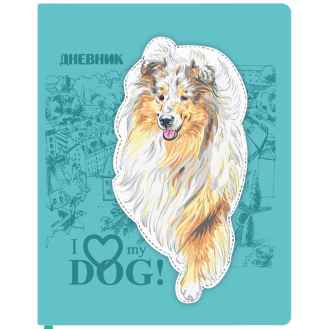 Дневник 1-11 класс 48 л., кожзам (твердая с поролоном), тиснение, аппликация, BRAUBERG, "Собачка", 106940